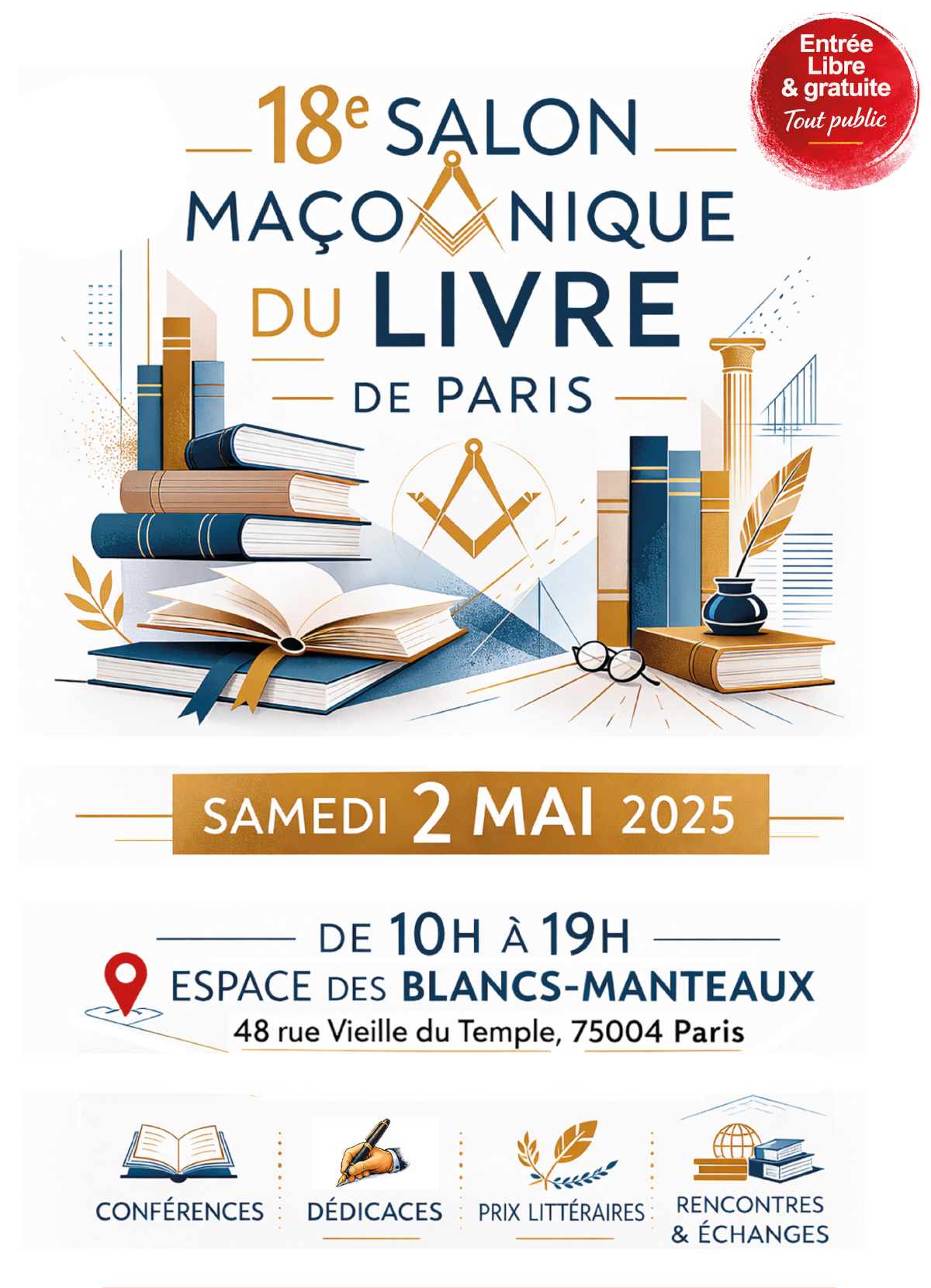 Samedi 2 mai, le retour du Salon maçonnique du livre de Paris !